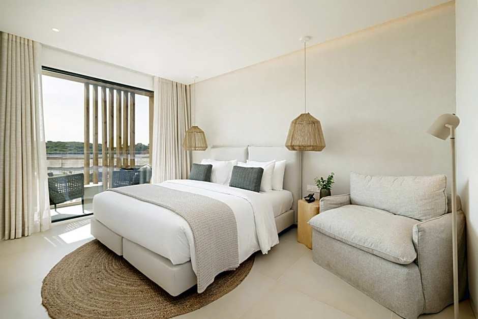 Direct beach access is a breeze, with a private beach area right at the doorstep and a long stretch of sand just steps away. Two outdoor pools cater to an adults-only crowd, making for serene sun-soaked days by the water, while on-site dining keeps the momentum going at Salicornia, a family-friendly restaurant, plus a bar, terrace, and balcony spaces that offer garden or sea views.